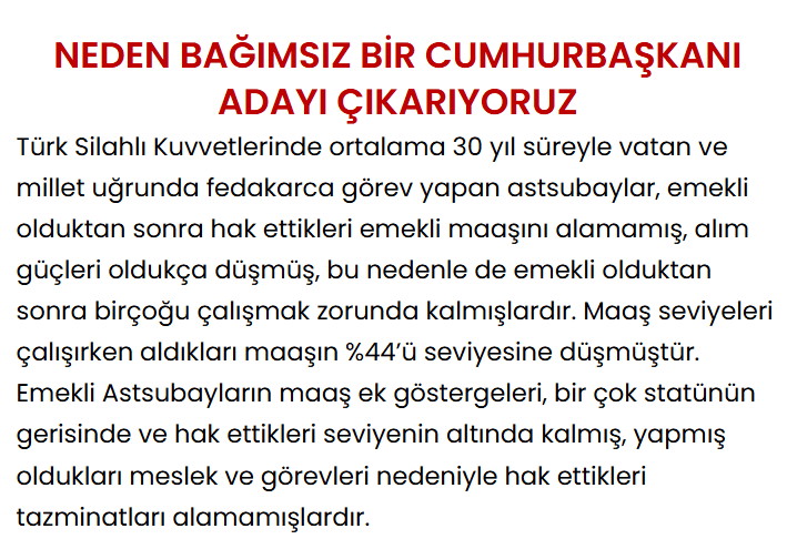 Üçüncüsü ise, ekonomik adaletsizliklerin siyasi bir krize dönüşme potansiyeli: Emekli maaşlarındaki erime, sadece astsubayları değil, tüm emeklileri ilgilendiriyor. Bu site, bu krizi bir fırsata dönüştürme cesaretini gösteriyor.