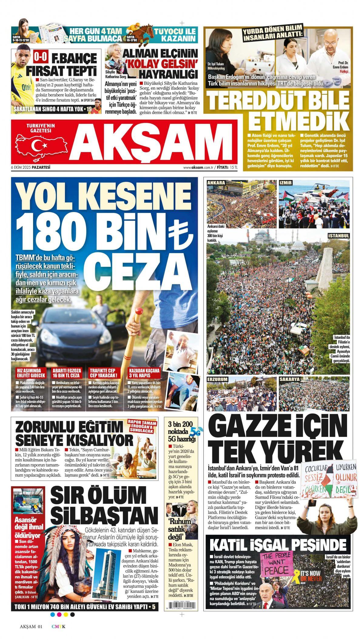 Akşam Gazetesi 6 Ekim 2025 Günü Manşeti