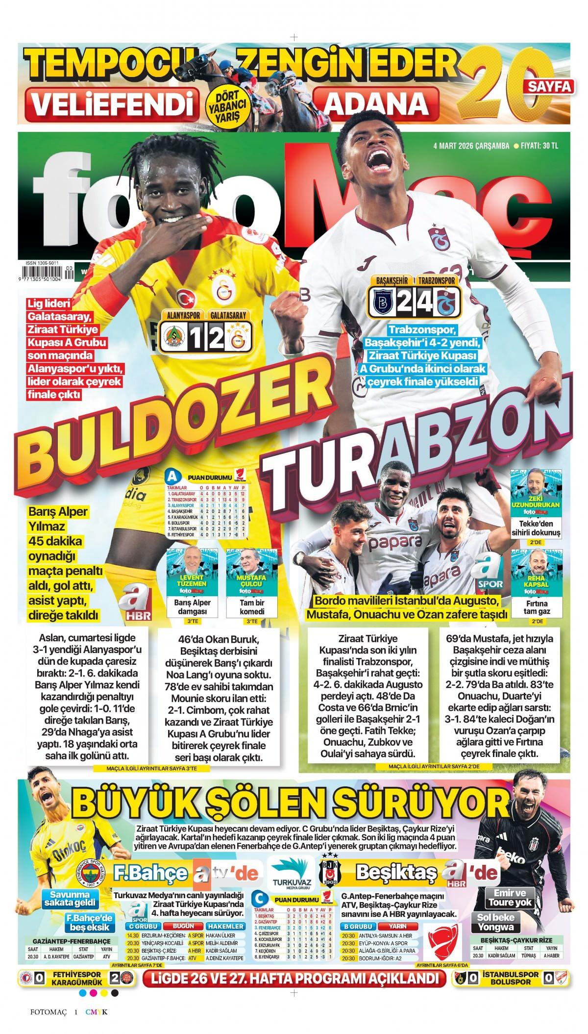 Fotomaç Gazetesi 5 Mart 2026 Günü Manşeti
