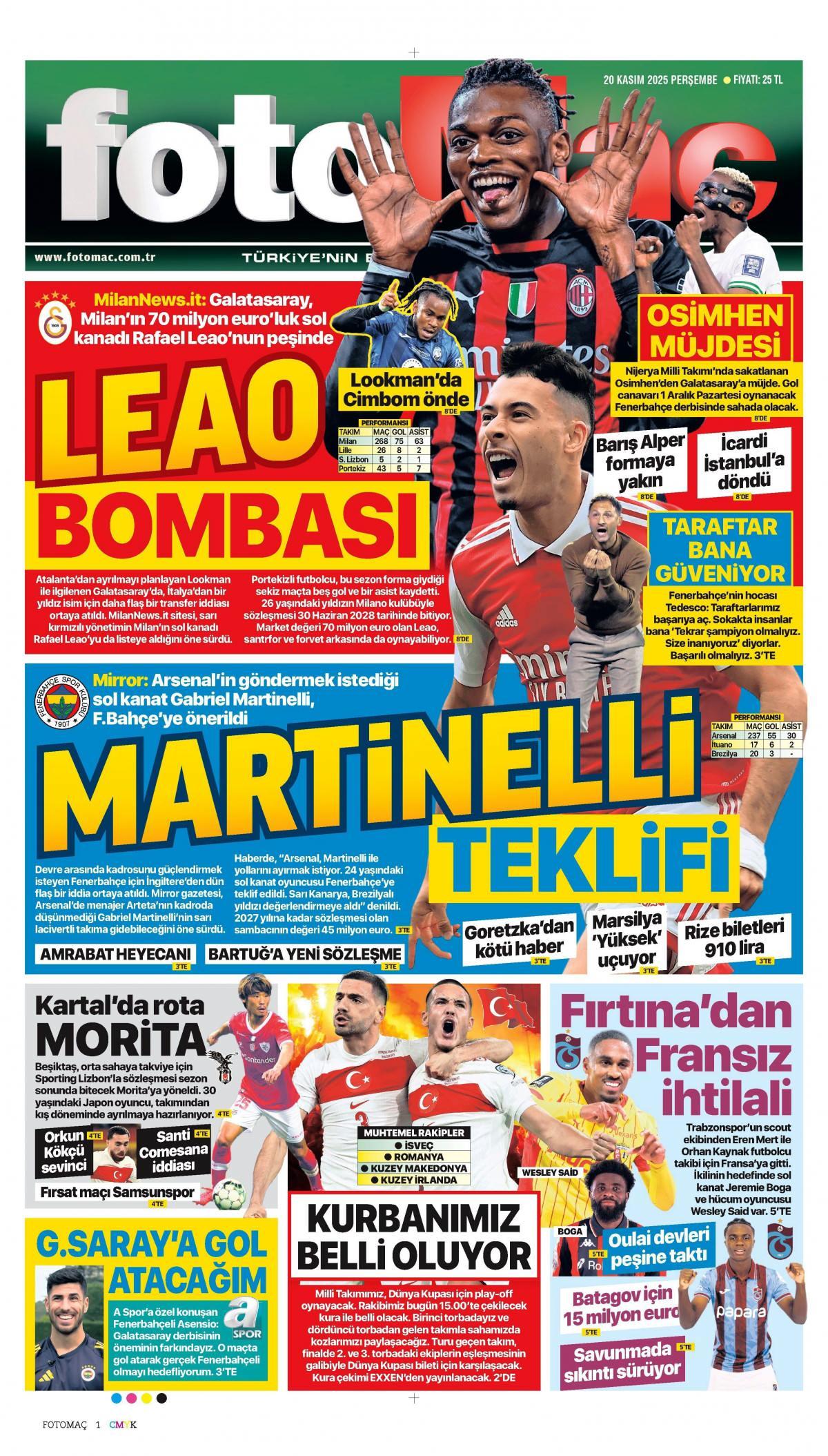 Fotomaç Gazetesi 21 Kasım 2025 Günü Manşeti