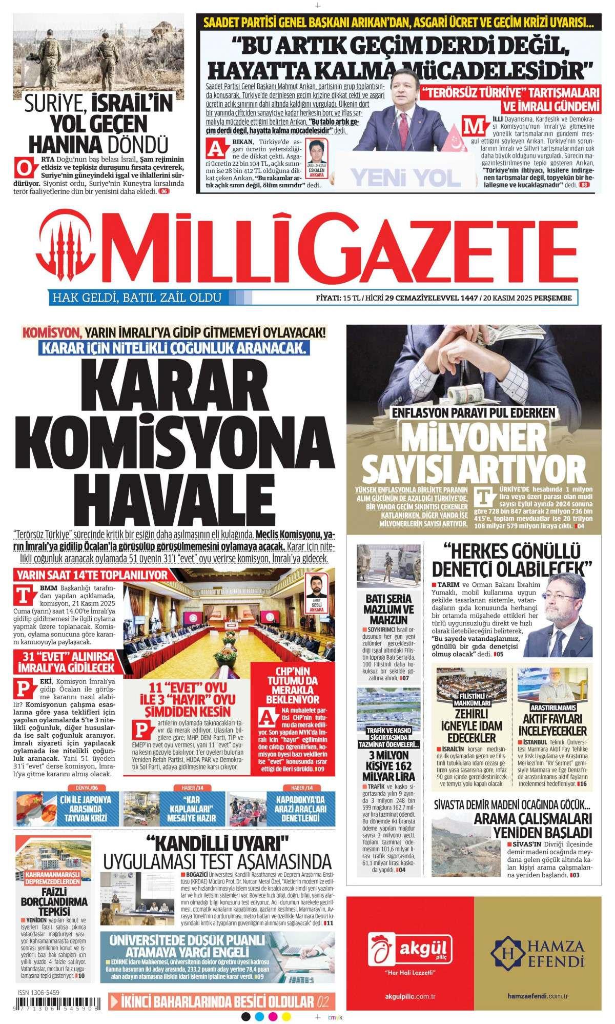 Milli Gazetesi 21 Kasım 2025 Günü Manşeti