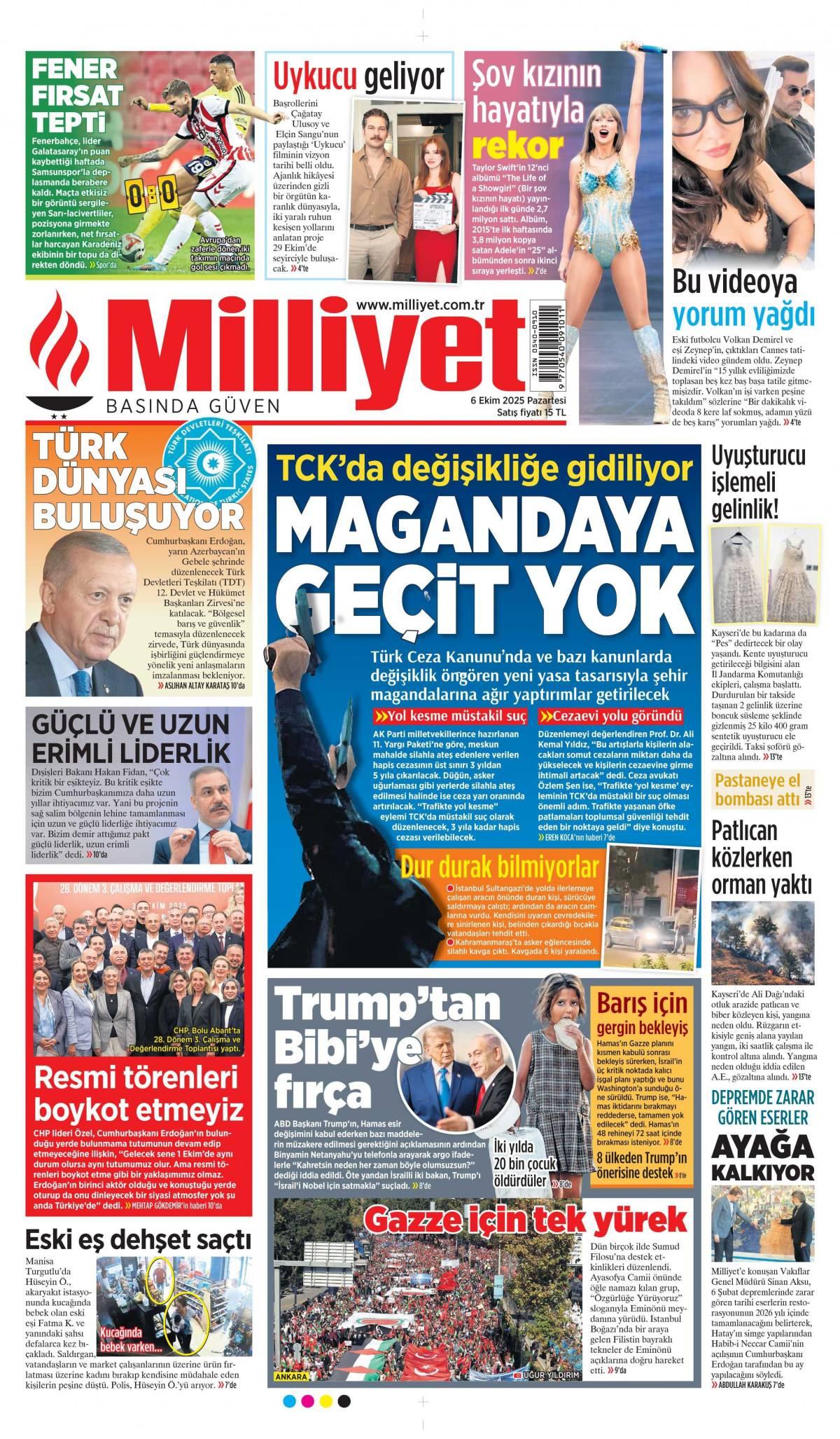 Milliyet Gazetesi 6 Ekim 2025 Günü Manşeti