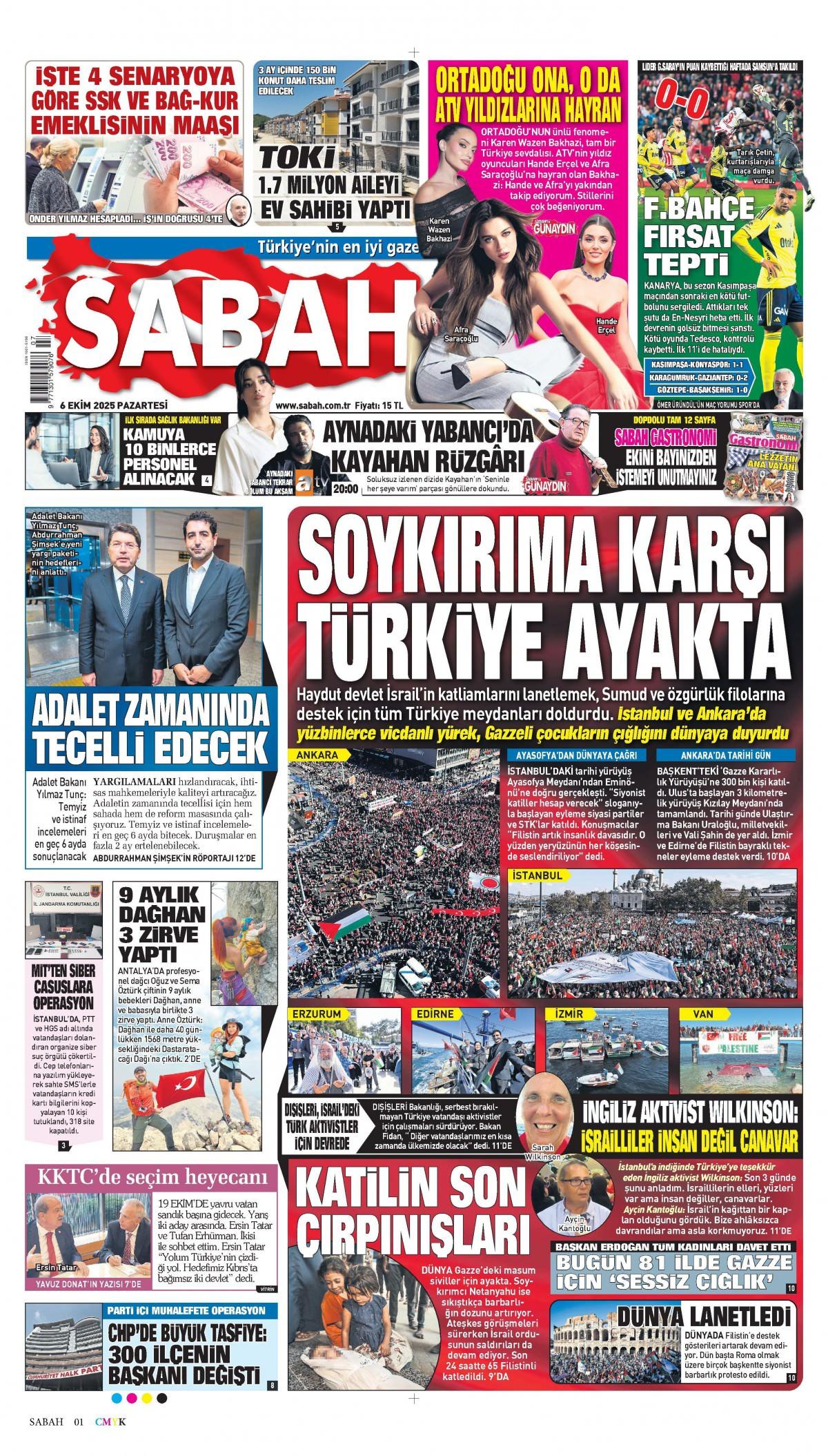 Sabah Gazetesi 6 Ekim 2025 Günü Manşeti