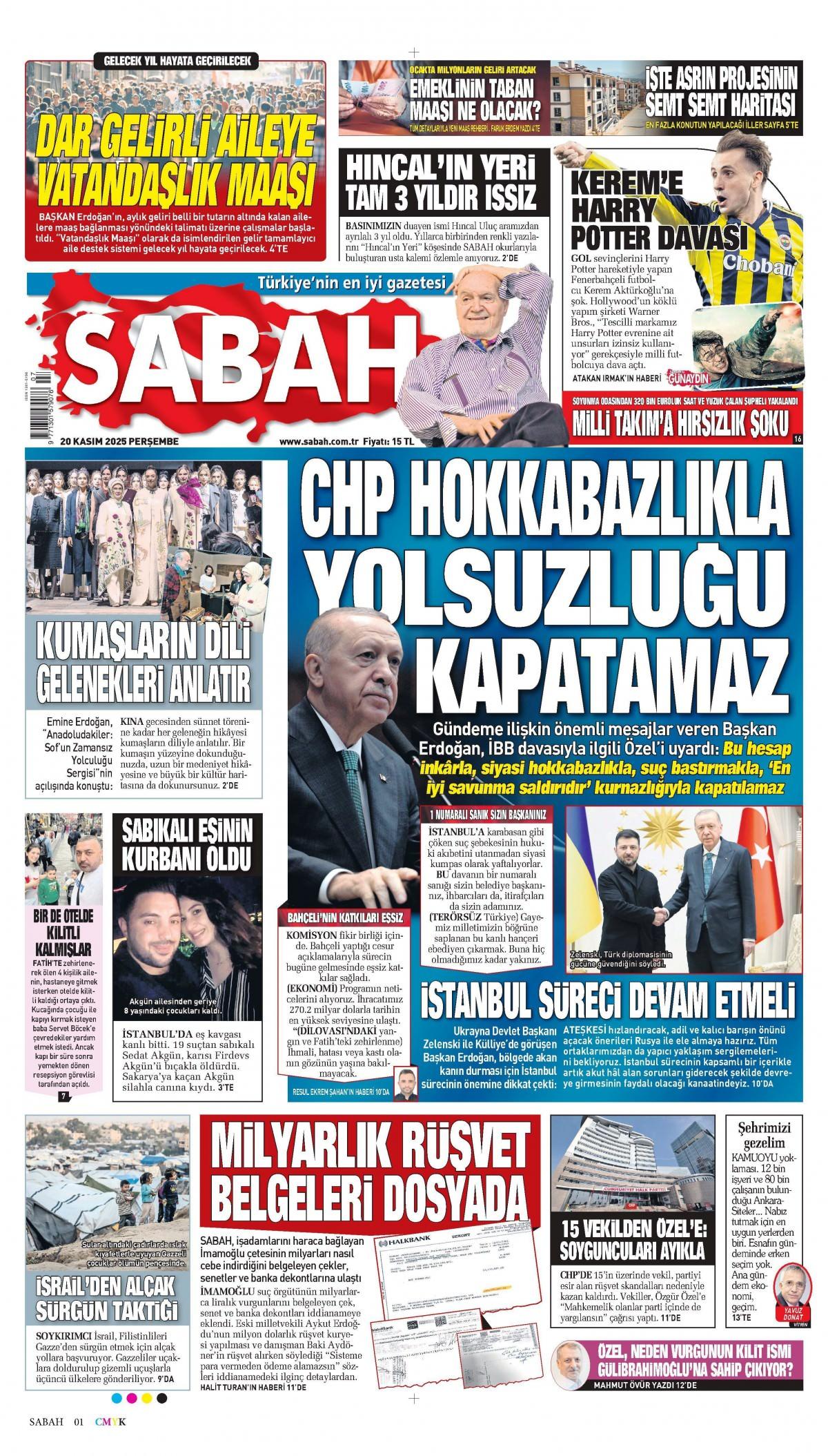 Sabah Gazetesi 21 Kasım 2025 Günü Manşeti