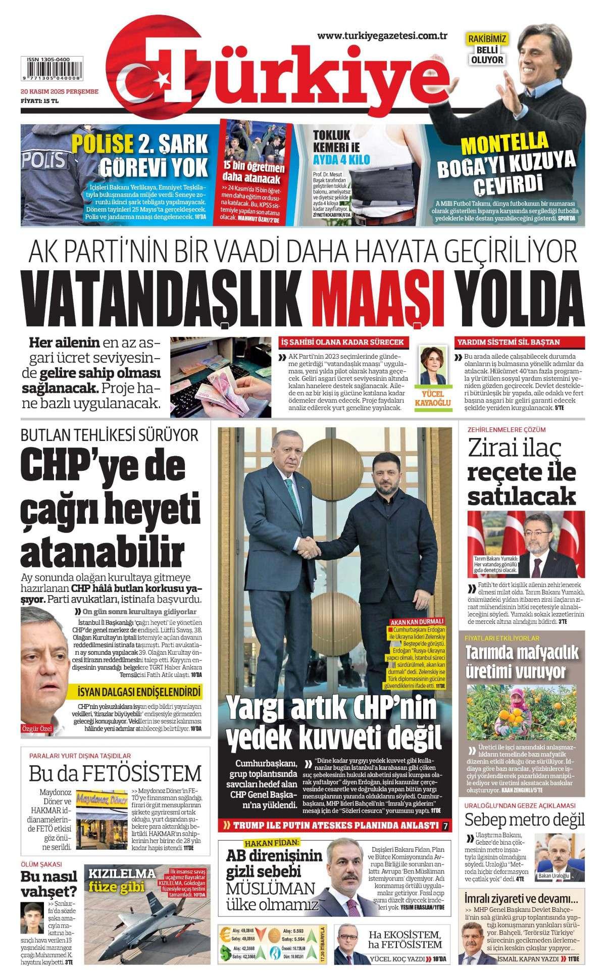 Türkiye Gazetesi 21 Kasım 2025 Günü Manşeti