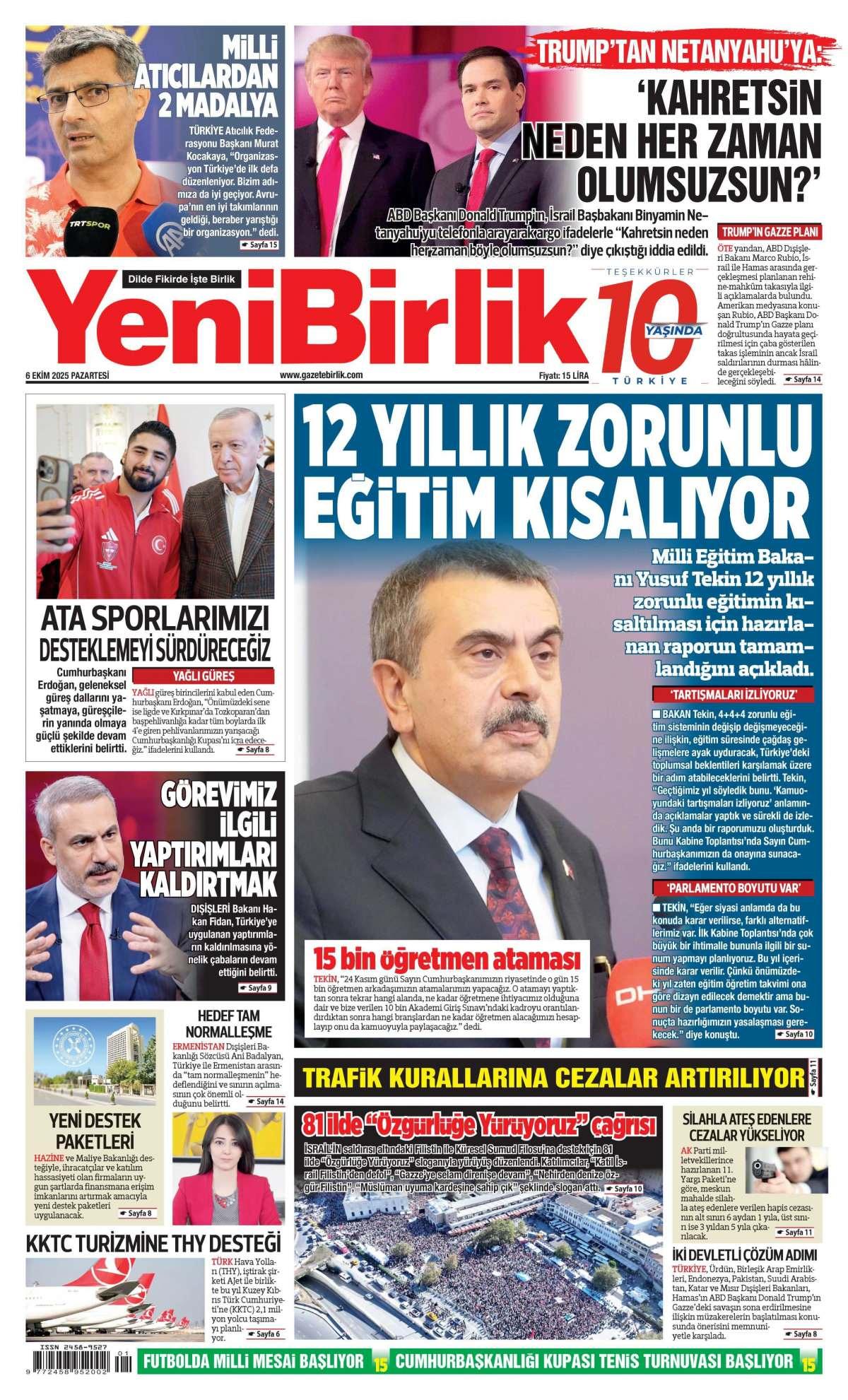 Yeni Birlik Gazetesi 6 Ekim 2025 Günü Manşeti