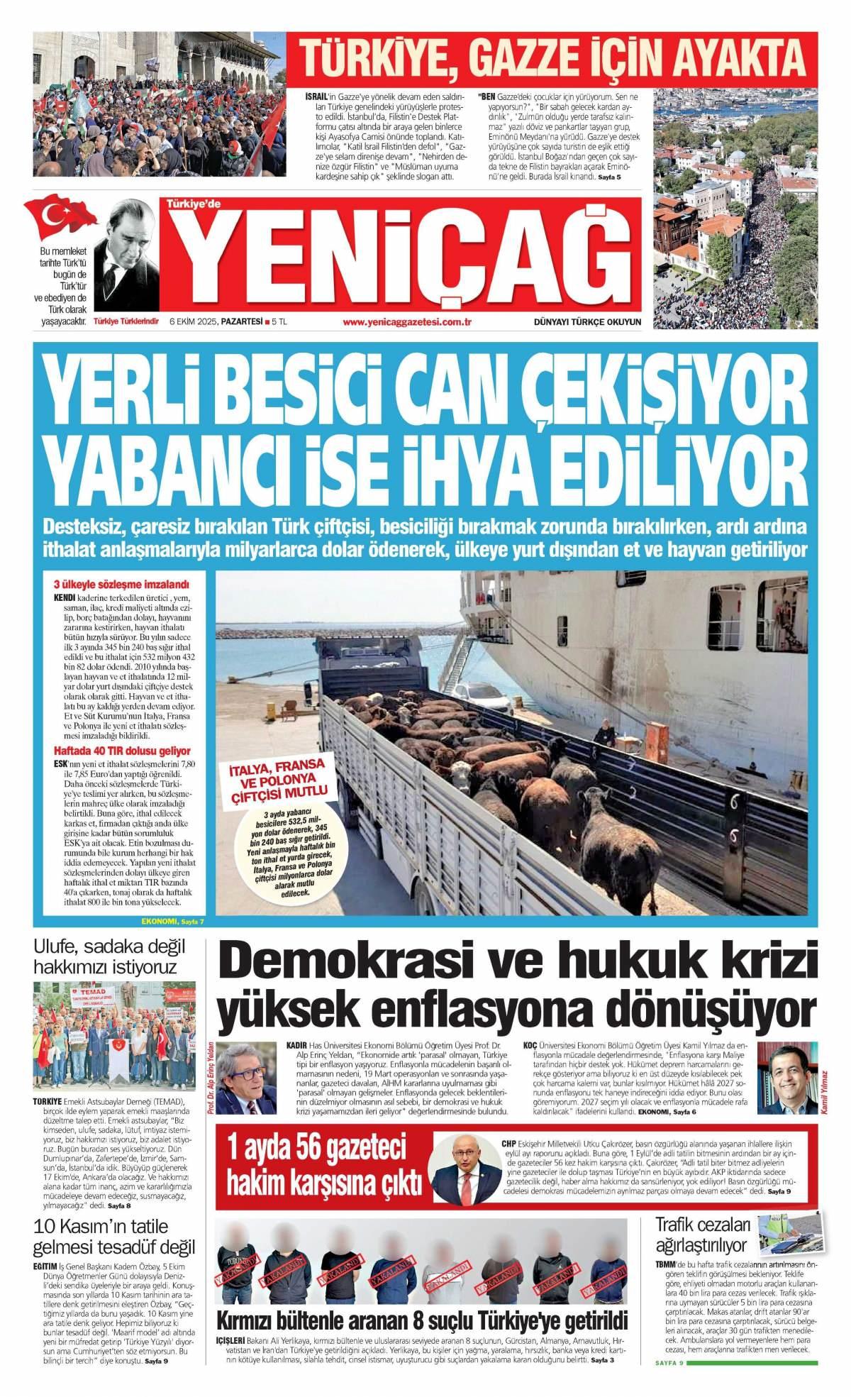 Yeni Çağ Gazetesi 6 Ekim 2025 Günü Manşeti