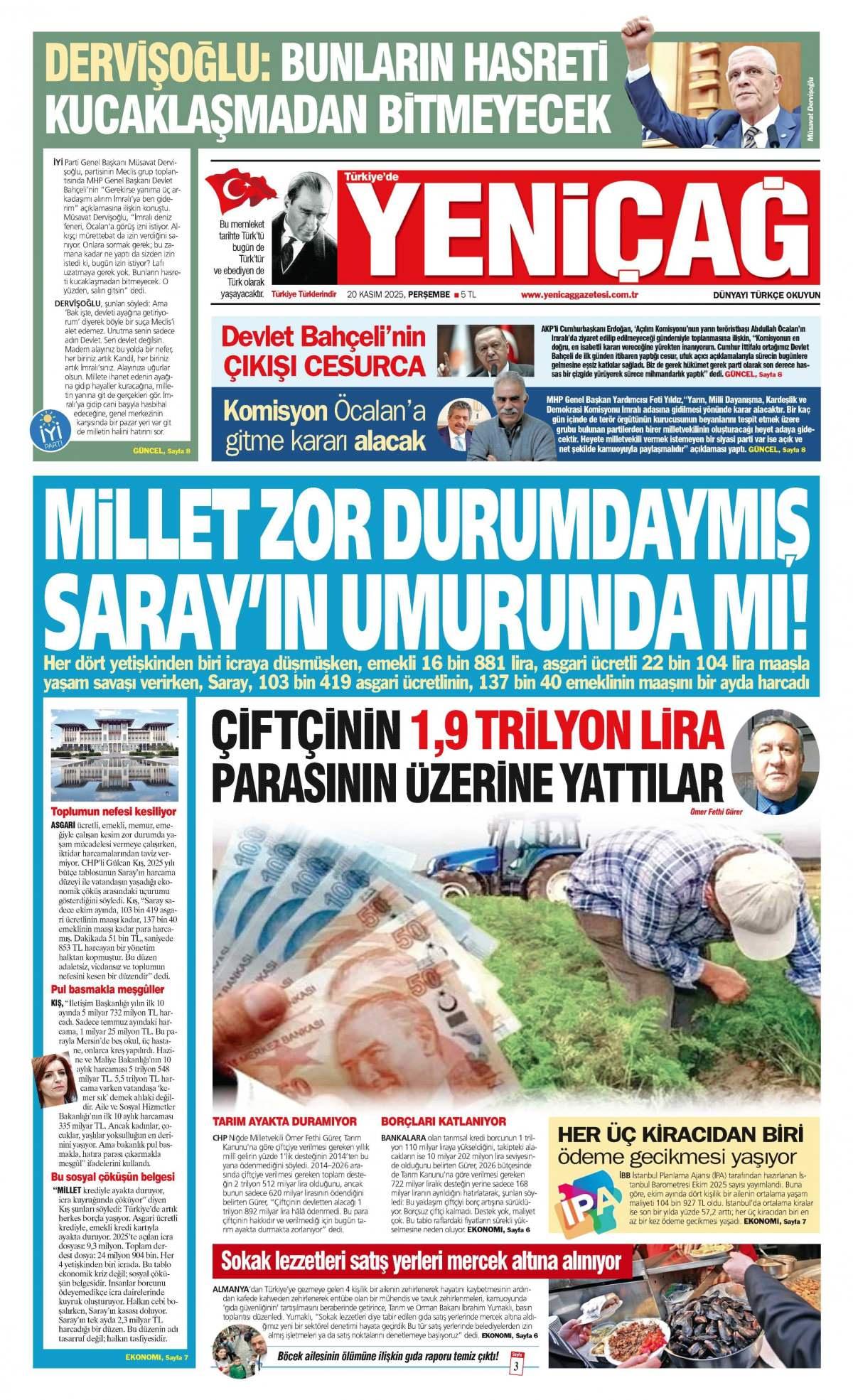 Yeni Çağ Gazetesi 21 Kasım 2025 Günü Manşeti